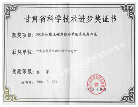 甘肅省科學技術進步獎證書